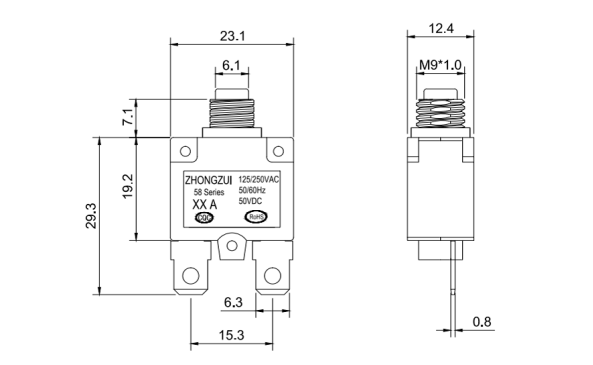 58系列是一種輕巧,單極,按壓后復(fù)位的過(guò)電流輔助保護(hù)器。