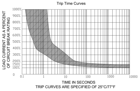 跳脫時(shí)間及電流跳脫曲線圖@+25℃