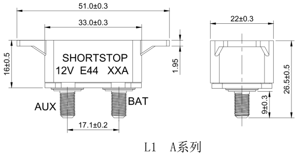 L1 Series is a one-pole,themal-trap,automatic reset,supplementary protector.